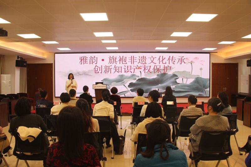 11月3日,由九三学社杭州电子科技大学委员会、九三学社杭州电子科技大学委员会二支社、省知识产权局、省发明协会联合主办的“旗袍文化与创新知识产权保护”活动,在浙江省知识产权保护中心5楼会议室举行。30位身着各式旗袍的女性端坐其间——轻盈的裙摆、精致的绣边、优雅的腰带,让会议室成了流动的东方美学展厅。活动由九三学社杭州电子科技大学委员会委员、二支社主委陈静主持。浙江省知识产权保护中心党委副书记曹辉、浙江省发明协会秘书长姜慧的致辞,让这场“雅聚”多了几分时代重量——这是对《关于进一步加强非物质文化遗产保护工作的意见》的生动践行,要为旗袍这一非遗技艺,搭起“传统技艺+现代法治”的保护桥梁。